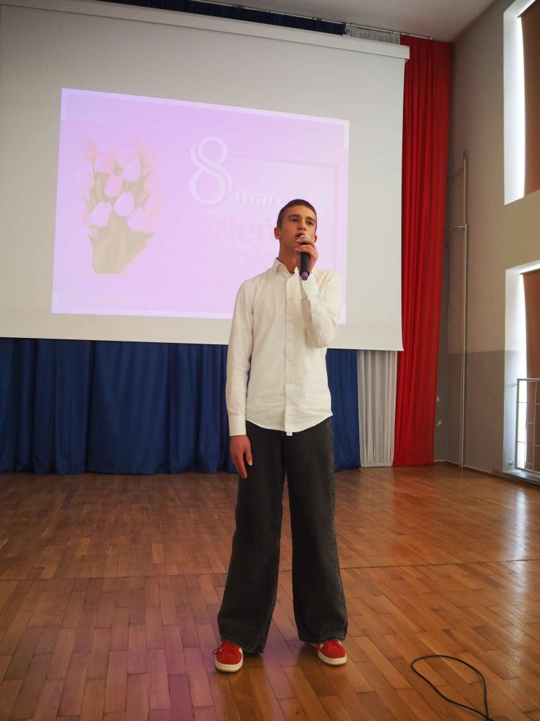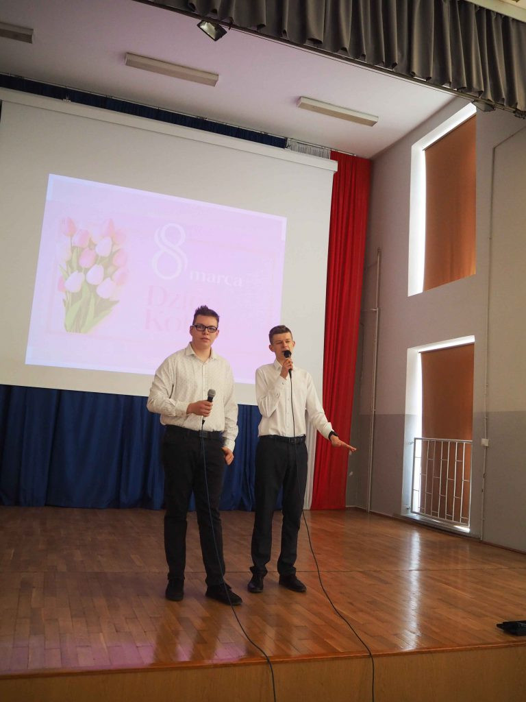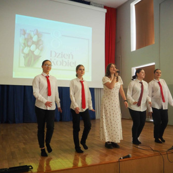 Szczęścia, uśmiechu, dużo radości, spełnienia wszystkich najskrytszych marzeń, samych przyjemnych w Twym życiu zdarzeń… tego i wiele innych ciepłych słów życzyli nasi mężczyźni wszystkim Paniom i Koleżankom. Podczas uroczystego apelu z okazji Dnia Kobiet, uczniowie zaprezentowali program artystyczny, ujawniając swoje zdolności aktorskie i taneczne. Mogliśmy podziwiać i usłyszeć muzyczne i wokalne życzenia od chłopców, którzy zaprezentowali specjalnie wybrany na ten dzień repertuar.