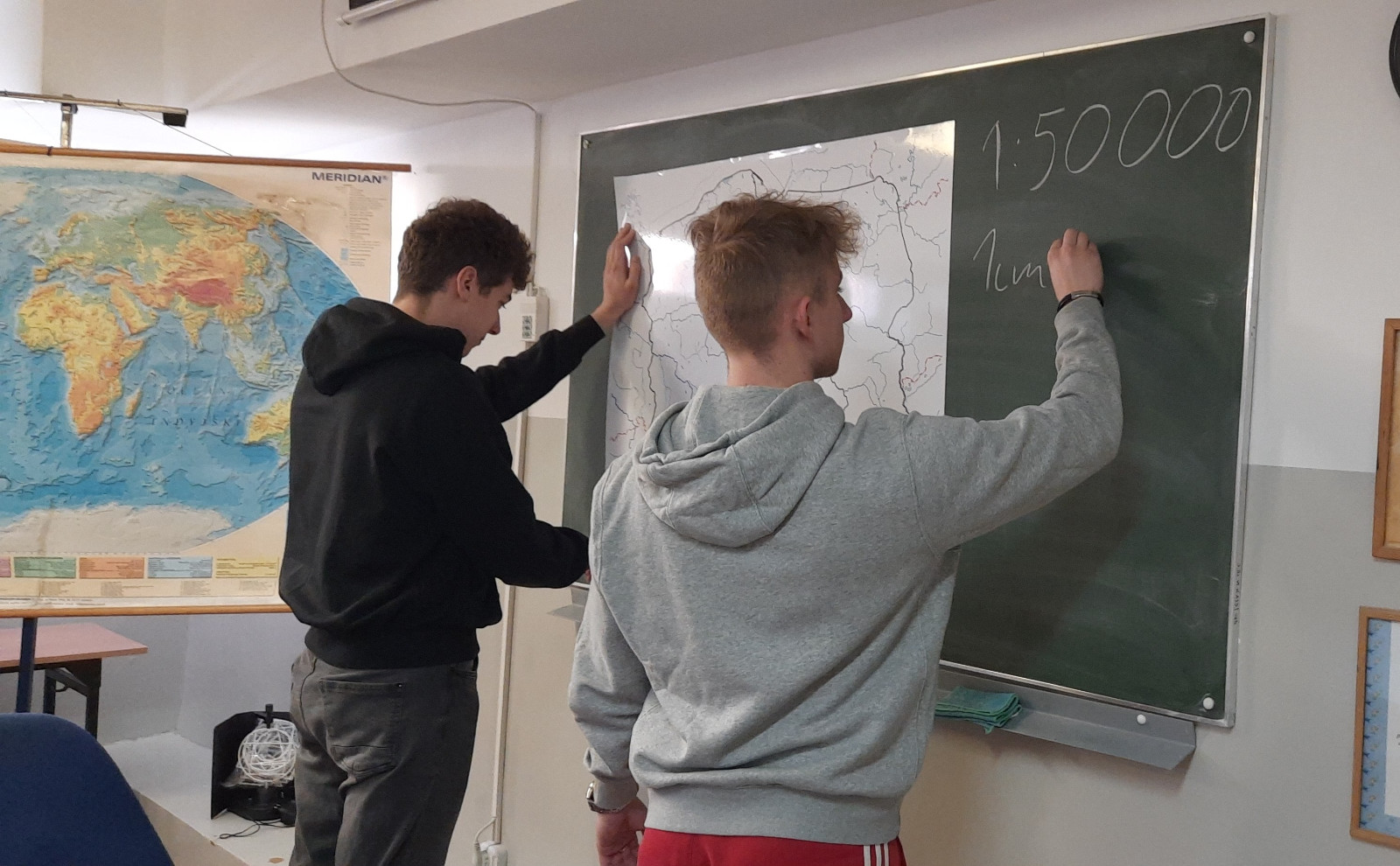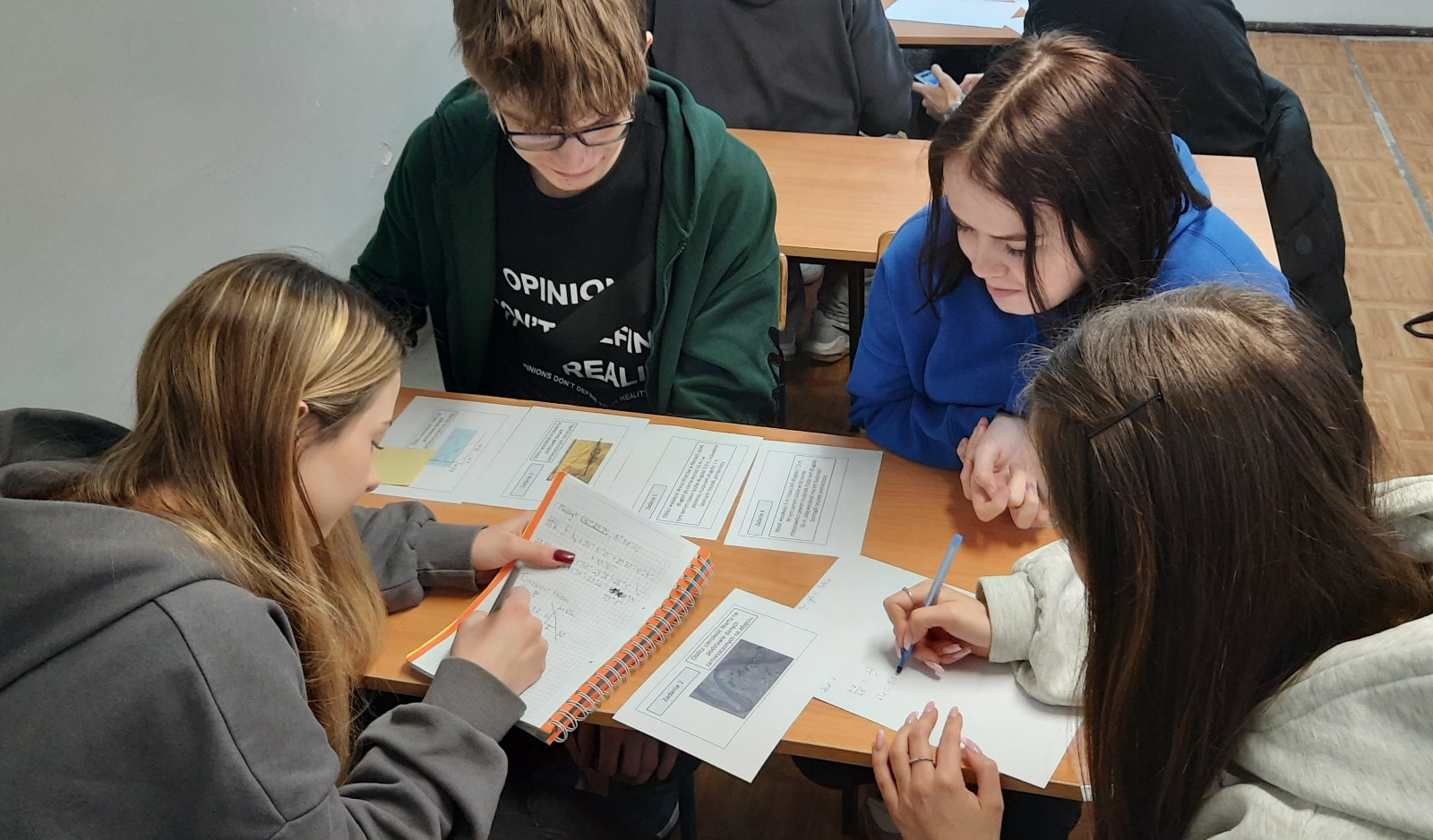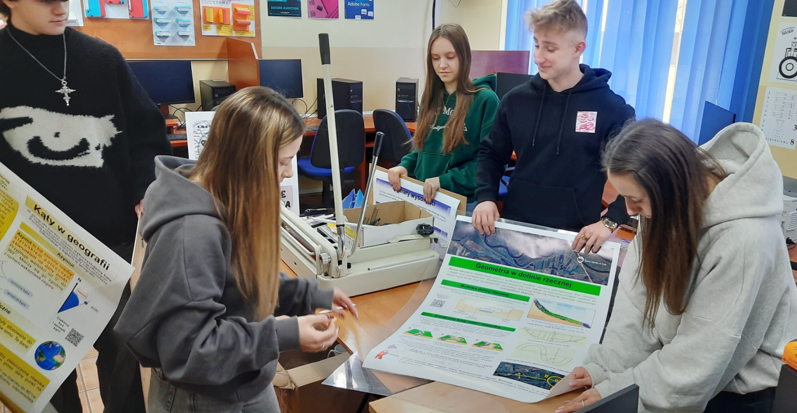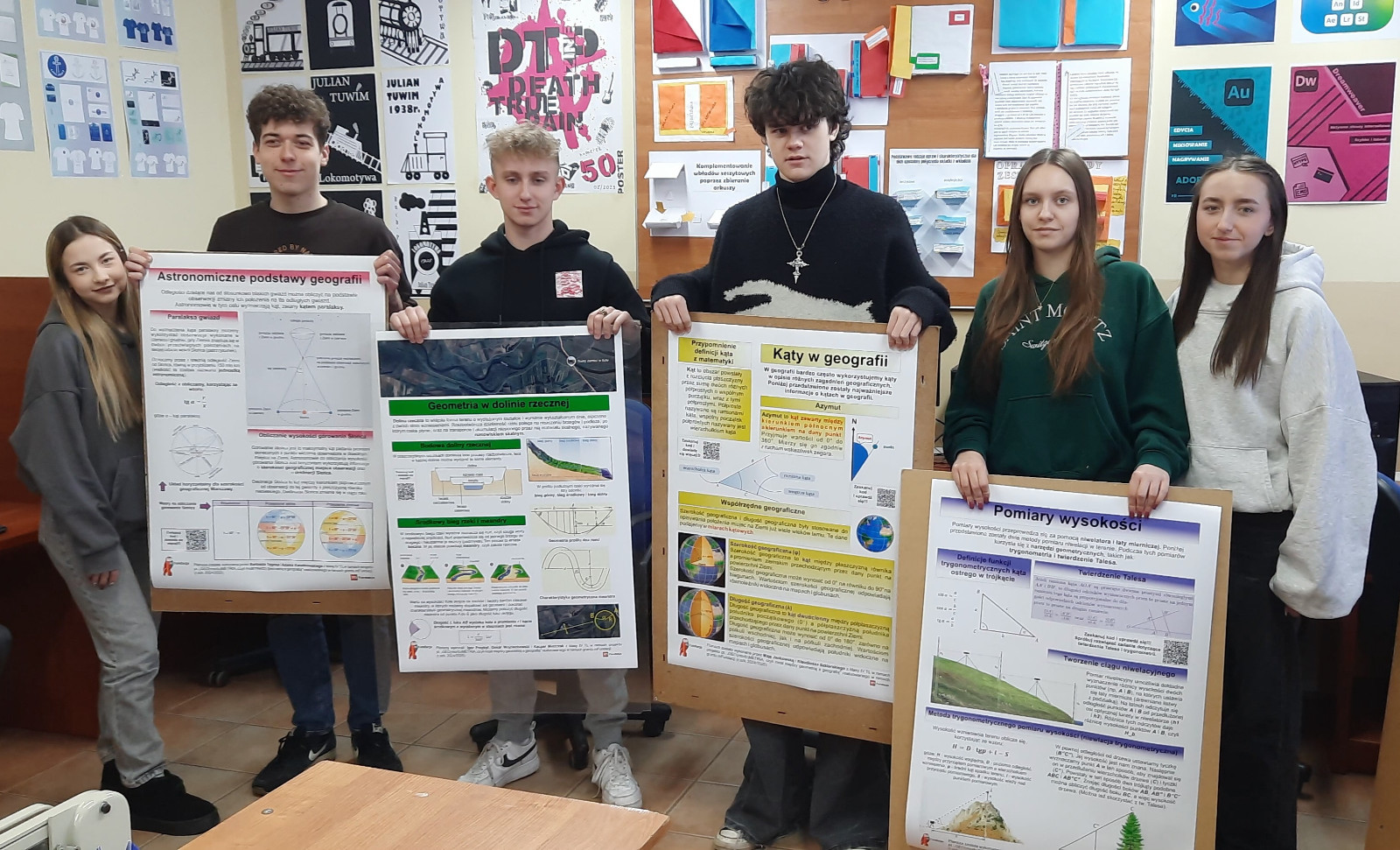 W ramach projektu uczniowie klasy 4TL uczestniczyli w warsztatach z geometrii, prowadzonych przez p. Dorotę Jasińską, oraz w warsztatach z zastosowań geometrii w geografii, prowadzonych przez p. Tomasza Suleję. Podczas zajęć z zastosowań geometrii w geografii uczniowie zaprojektowali i wydrukowali plansze edukacyjne, które będą stanowiły pomoc edukacyjną. Ze środków projektu zakupiono także pomoce dydaktyczne do pracowni matematycznej, m.in. zestaw brył, przyrząd do demonstracji powstawania brył obrotowych czy przyrządy tablicowe. Pomoce te były wykorzystywane podczas warsztatów.