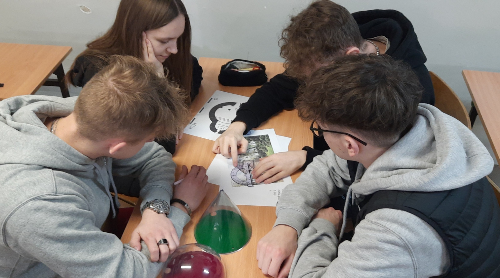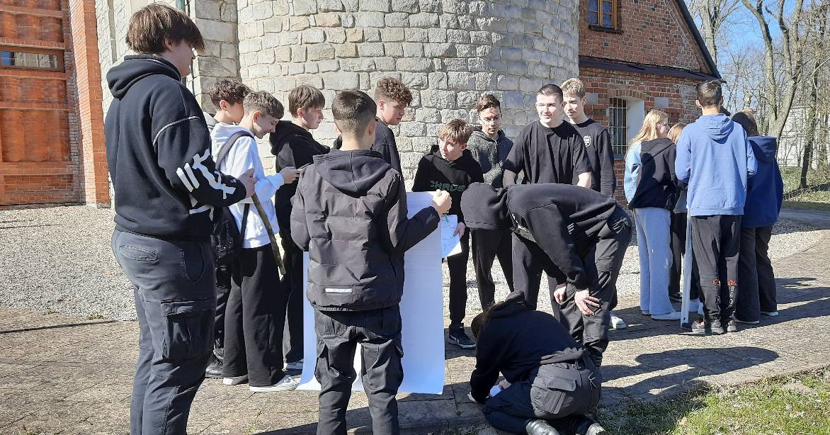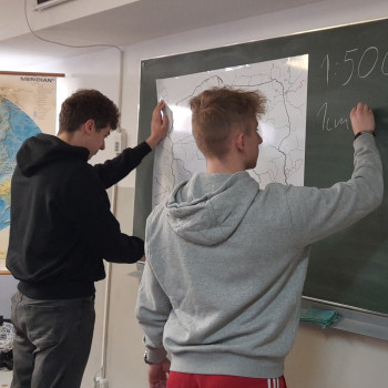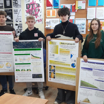 W ramach projektu odbyły się także ćwiczenia terenowe pn. „Zastosowania geometrii w badaniach geograficznych”, w których uczestniczyli uczniowie klas IV TL oraz I TEL.