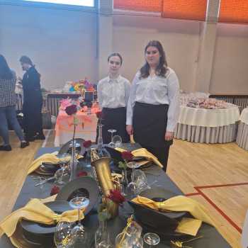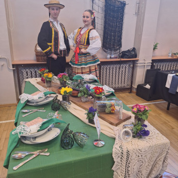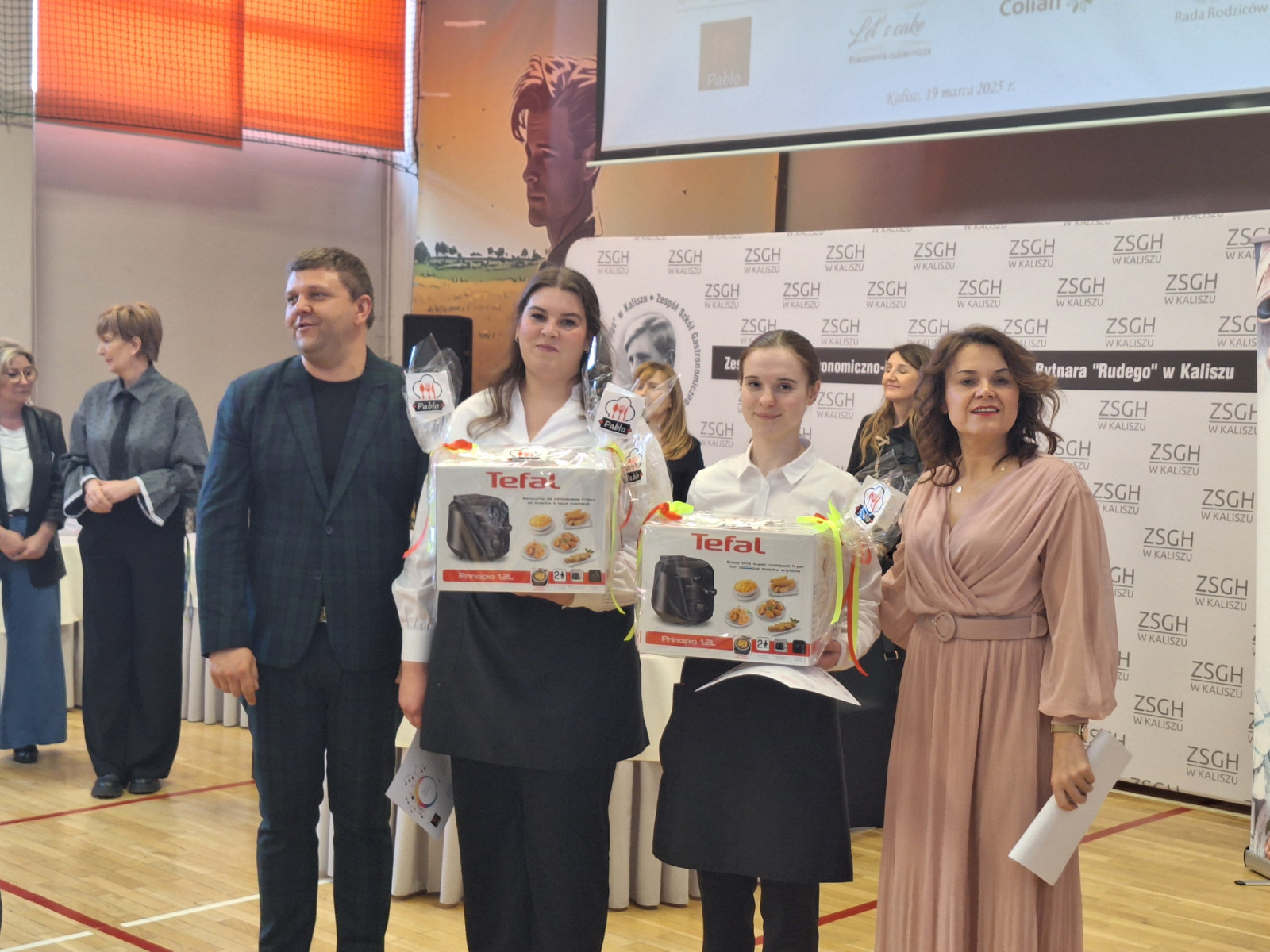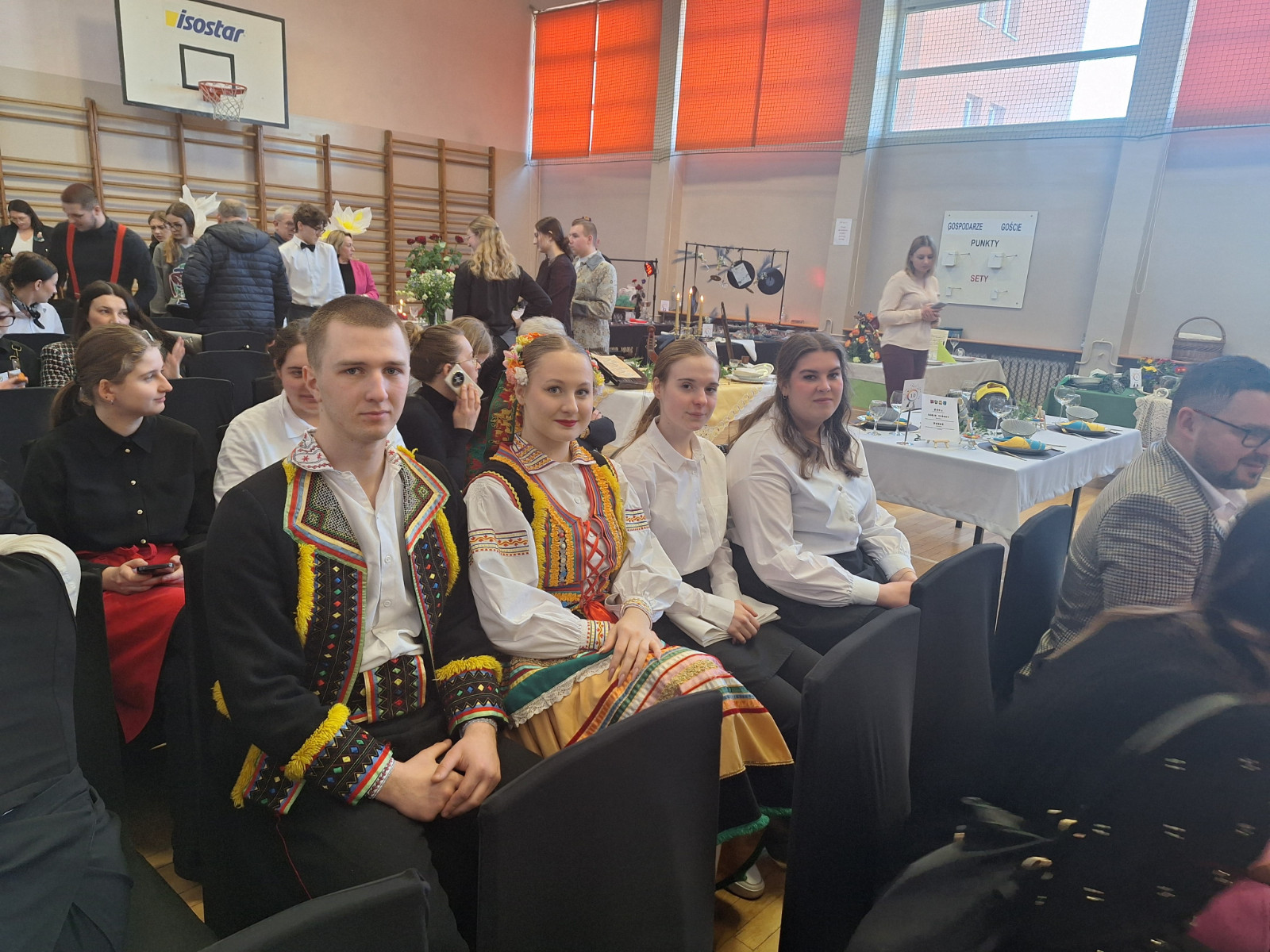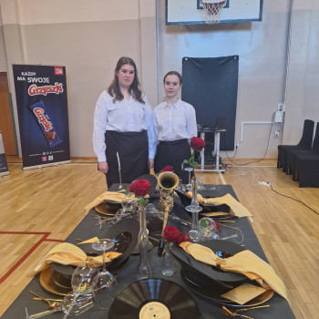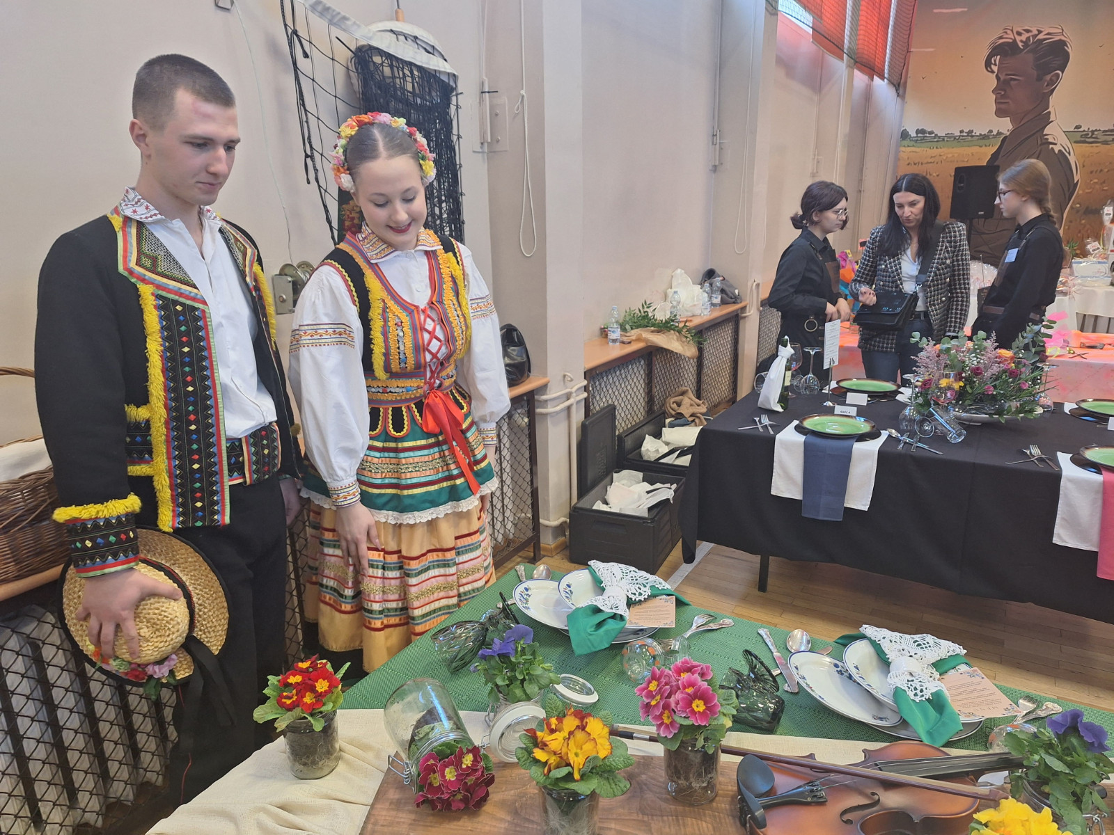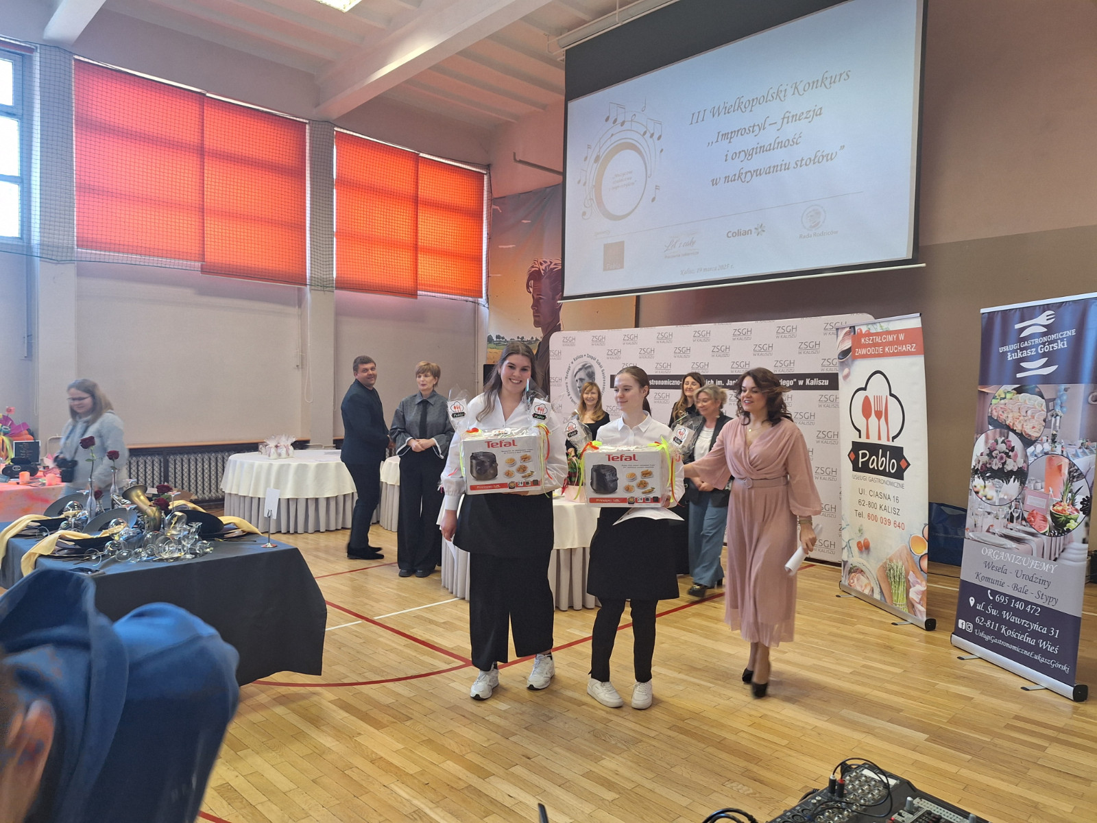 19 marca 2025 r. uczniowie Technikum Żywienia i Usług Gastronomicznych zajęli dwa miejsca na podium podczas III Wielkopolskiego Konkursu „Improstyl- finezja i oryginalność w nakrywaniu stołów” organizowanego przez ZSGH im Janka Bytnara ”Rudego” w Kaliszu. Tematem tegorocznej edycji konkursu było „Muzyczne szaleństwo z improstylem”. W konkursie wzięło udział 14 stołów zaaranżowanych przez uczniów ze szkół gastronomicznych z całej Wielkopolski. Z naszej szkoły dwie drużyny zdecydowały się przygotować konkursowe stoły. Zespół w osobach: Kinga Zawadzka z klasy V TŻ i Zuzanna Brzezińska z klasy III TŻ zajął I miejsce w konkursie , za aranżację stołu pt. „Kolacja w towarzystwie starych szlagierów” , natomiast zaszczytne III miejsce w konkursie zajął duet z klasy V TŻ : Joanna Grabska i Jakub Kaszuba, za przygotowanie kaszubskiego stołu pt. „ Biesiada na ludową nutę”. Gratulujemy naszym uczniom ogromnego sukcesu !!!
