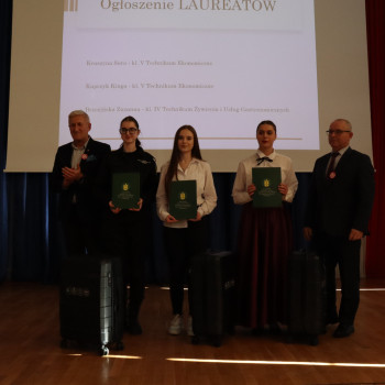 Dyplomy: Blanka Płóciennik klasa I Technikum Ekonomicznego, Julia Żywanowska klasa I Technikum Żywienia i Usług Gastronomicznych, Monika Mruk klasa I Technikum Logistycznego, Monika Rybińska klasa I Technikum Logistycznego, Nikola Bielecka klasa I Technikum Weterynarii, Gabriela Michalak klasa I Technikum Weterynarii, Wiktoria Błaszkiewicz klasa I Technikum Weterynarii, Nadia Kowalska klasa I Technikum Weterynarii, Oliwia Bocian klasa III Technikum Żywienia i Usług Gastronomicznych.