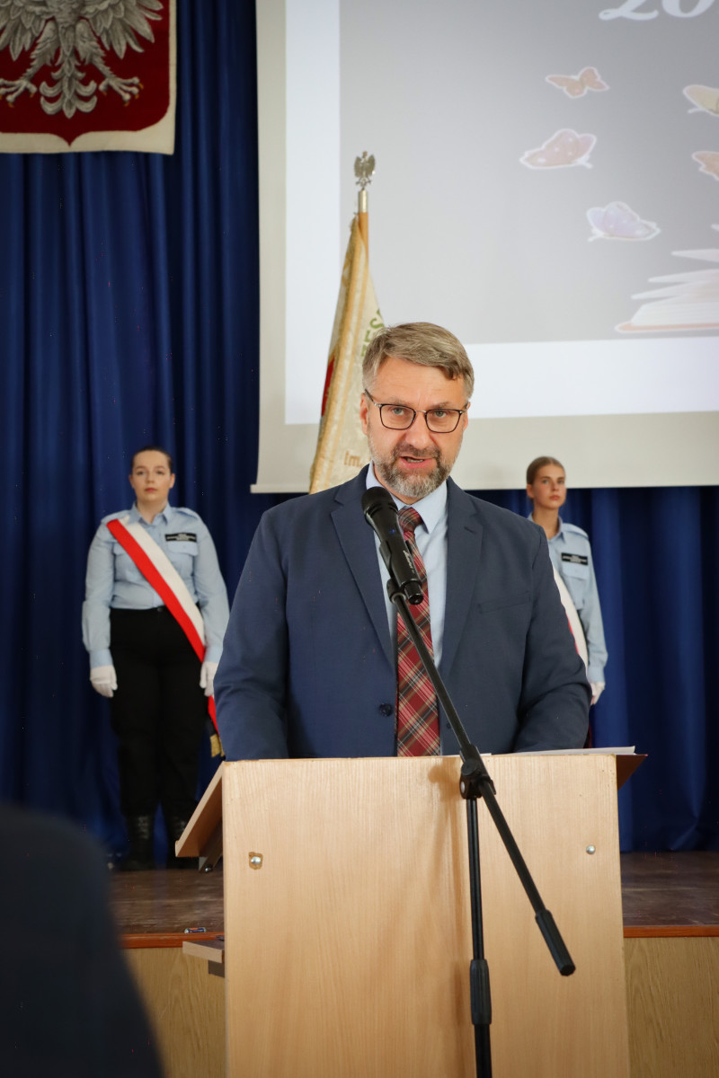 Pan Dyrektor Wiesław Kujawa oficjalnie powitał wszystkich zaproszonych gości, nauczycieli, rodziców a w szczególności uczniów klas pierwszych.