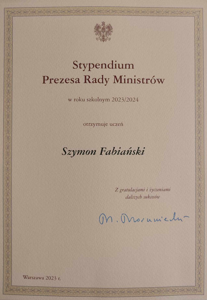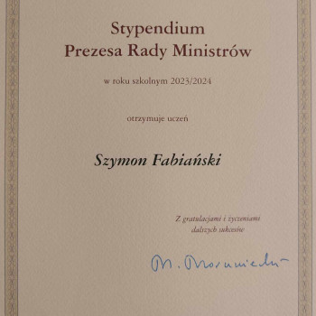 Wśród najlepszych uczniów znalazł się Szymon Fabiański – uczeń klasy czwartej Technikum Informatycznego Zespołu Szkół Rolniczego Centrum Kształcenia Ustawicznego im. Stanisława Staszica w Kościelcu. Na ww. uroczystości obecni byli również Pan dyrektor szkoły – Wiesław Kujawa oraz Pani Ewa Fabiańska.